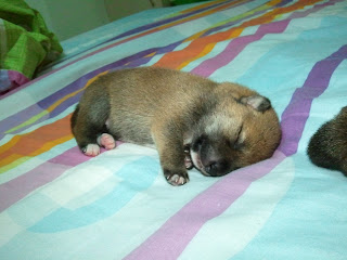 Am glad they are healthy & kinda naughty.. Within a week you will definately see the differences, which they are getting bigger(very obvious), they howls & cries (sometimes when they are hungry), they yawn (always), etc etc.. Shiba puppies are kinda "aggressive" during FEEDING, guess that's why I can see the differences.. New born puppies need super care & observation (clean hands), i will observe my cookie (mother of the pups), to check if she is doing "her job" well.. I will also observe the pups, to see how are they doin everyday, including gently massaging their belly (after feeding) and stimulating them to pee and poo... puppies poo poo will indicates they are sick or healthy..
